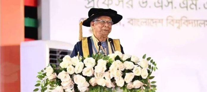 বুধবার (১৪ মে) চবির পঞ্চম সমাবর্তন অনুষ্ঠানে বক্তৃতা করছেন প্রধান উপদেষ্টা ড. মুহাম্মদ ইউনূস।
