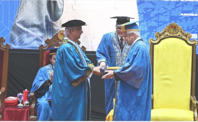 বুধবার (১৩ আগস্ট) সকালে কুয়ালালামপুরে ইউকেএম বিশ্ববিদ্যালয় অডিটোরিয়ামে আয়োজিত এক আনন্দঘন পরিবেশে বিশ্ববিদ্যালয়ের চ্যান্সেলরের কাছ থেকে সম্মানসূচক ডক্টরেট ডিগ্রির সনদ নেন প্রফেসর মুহাম্মদ ইউনূস।
