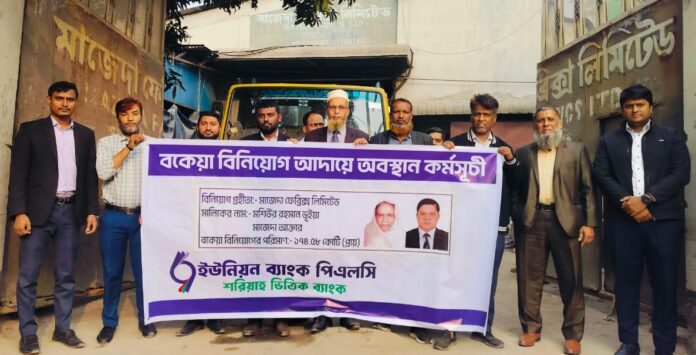 গ্রাহকের আস্থা বৃদ্ধি এবং ব্যাংকের ভিত অধিকতর শক্তিশালীকরণের লক্ষ্যে ইউনিয়ন ব্যাংক পিএলসি. নতুন বছরে খেলাপি বিনিয়োগ আদায়ের লক্ষ্যে নানাবিধ কর্মসূচী গ্রহণ করেছে। তারই অংশ হিসেবে ১৩ জানুয়ারী, ২০২৫ তারিখে ব্যাংকের খেলাপি গ্রাহক মাজেদা ফেবিক্স লিমিটেড এর নিকট ব্যাংকের বকেয়া পাওনা ১৭৪.৫৮ কোটি টাকা প্রায় আদায়ের লক্ষ্যে সামাজিক আন্দোলনের অংশ হিসেবে উক্ত প্রতিষ্ঠানের সামনে ব্যাংকের প্রধান কার্যালয় এবং শাখার বিভিন্ন পর্যায়ের নির্বাহী ও কর্মকর্তাগণ অবস্থান কর্মসূচী পালন করে। উক্ত প্রতিষ্ঠানের চেয়ারম্যান জনাবা মাজেদা আক্তার এবং ব্যবস্থাপনা পরিচালক জনাব মশিউর রহমান ভূইয়া।