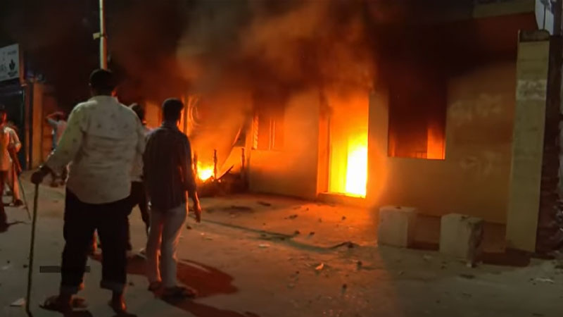 বিক্ষোভকারীরা সড়কে অগ্নিসংযোগ শুরু করলে পরিস্থিতি আরও ভয়াবহ হয়ে ওঠে। এর কিছুক্ষণ পর তারা জাতীয় পার্টির কেন্দ্রীয় কার্যালয়ের উপর হামলা চালায় এবং আগুন ধরিয়ে দেয়। এতে এলাকার পরিবেশ সংকটাপন্ন হয়ে পড়ে। পুলিশ দ্রুত ঘটনাস্থলে পৌঁছে পরিস্থিতি নিয়ন্ত্রণের চেষ্টা করে। পুলিশ বিক্ষোভকারীদের ছত্রভঙ্গ করতে লাঠিচার্জসহ সাউন্ডগ্রেনেড এবং টিয়ারশেল ব্যবহার করে। এর ফলে দুইপক্ষের মধ্যে ধাওয়া-পাল্টা ধাওয়ার ঘটনা ঘটে। স্থানীয়রা এবং চলাচলরত সাধারণ মানুষ আতঙ্কিত হয়ে পড়েন।