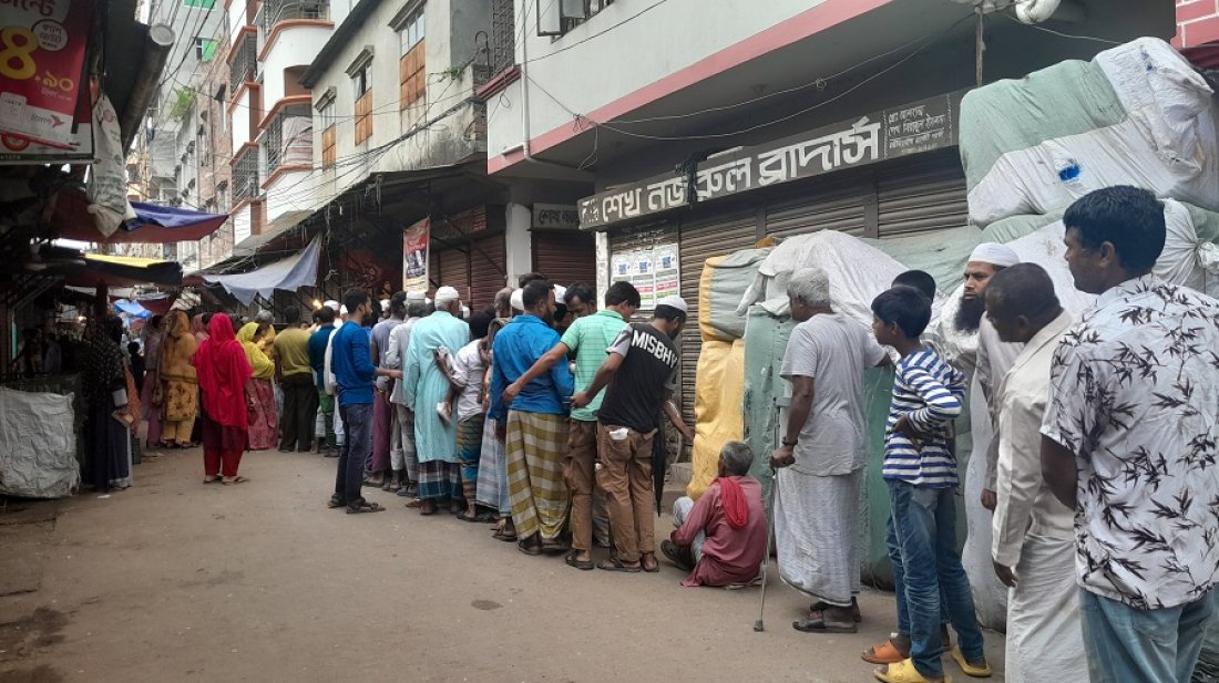 ডেমরার স্টাফ কোয়ার্টার সড়কে ব্যাগ হাতে দাঁড়িয়েছিলেন ৬৫ বছর বয়সি বৃদ্ধা কহিনুর বেগম। রবিবার টিসিবির পণ্য ক্রয়ের জন্য সিরিয়াল দিলেও পণ্য শেষ হয়ে যাওয়ায় খালি হাতেই বাড়িতে ফিরতে হয় তাকে। সেজন্য সোমবার সকাল-সকাল এসে লাইনে দাঁড়িয়েছেন। শুধু রোকেয়া বেগমই নন, টিসিবির তেল, ডাল, চিনি কেনার জন্য ব্যাগ হাতে এমনভাবে দাঁড়িয়ে ছিলেন অনেকেই।