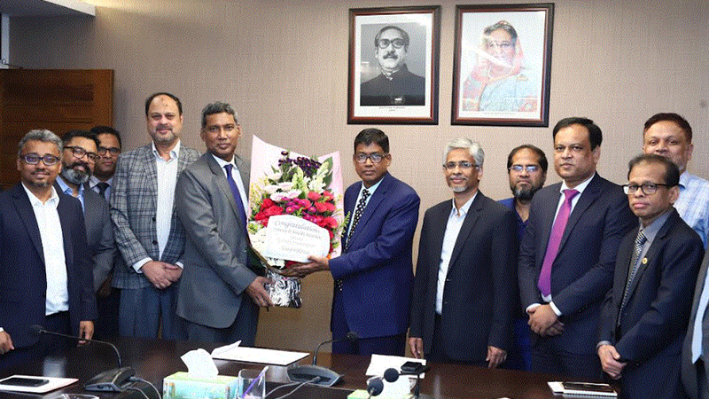 ঢাকা স্টক এক্সচেঞ্জের (ডিএসই) নবনির্বাচিত চেয়ারম্যান অধ্যাপক ড. হাফিজ মুহম্মদ হাসান বাবুর সঙ্গে গতকাল তার কার্যালয়ে সৌজন্য সাক্ষাৎ করেছে সিইও ফোরামের প্রেসিডেন্ট মো. ছায়েদুর রহমানের নেতৃত্বে ১৩ সদস্যের একটি প্রতিনিধি দল। এ সময় ডিএসইর ব্যবস্থাপনা পরিচালক (ভারপ্রাপ্ত) এম. সাইফুর রহমান মজুমদার এবং সিনিয়র মহাব্যবস্থাপক ও কোম্পানি সচিব মোহাম্মদ আসাদুর রহমান উপস্থিত ছিলেন। সাক্ষাৎকালে ড. হাফিজ মুহম্মদ হাসান বাবু পুঁজিবাজারসংশ্লিষ্ট বিভিন্ন বিষয় নিয়ে আলোচনা করেন।