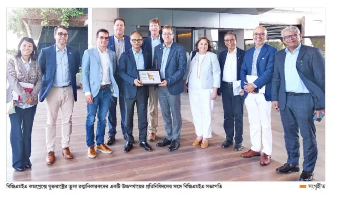 বিজিএমইএ জনিয়েছে, বৈঠকের মূল আলোচ্য বিষয় ছিল দ্বিপাক্ষিক বাণিজ্য বৃদ্ধি, মার্কিন তুলার ব্যবহার সম্প্রসারণ এবং বাংলাদেশ থেকে যুক্তরাষ্ট্রে পোশাক রপ্তানিতে নবঘোষিত শুল্ক সুবিধা কাজে লাগানো।
