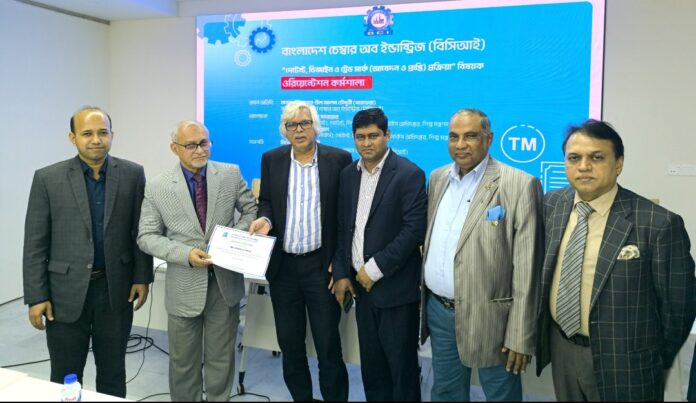 আজ সকালে বাংলাদেশ চেম্বার অব ইন্ডাস্ট্রিজ (বিসিআই) এর আয়োজনে ঢাকার বিসিআই বোর্ডরুমে অনুষ্ঠিত হলো “পেটেন্ট, ডিজাইন ও ট্রেড মার্ক (আবেদন ও প্রাপ্তি) প্রক্রিয়া” বিষয়ক একটি গুরুত্বপূর্ণ ওরিয়েন্টেশন কর্মশালা। এ কর্মশালায় প্রধান অতিথি হিসেবে উপস্থিত ছিলেন বিসিআই এর সভাপতি জনাব আনোয়ার-উল আলম চৌধুরী (পারভেজ)। কর্মশালায় আলোচক হিসেবে উপস্থিত ছিলেন পেটেন্ট, শিল্প-নকশা ও ট্রেডমার্কস অধিদপ্তরের উপ-পরিচালক মির্জা গোলাম সারোয়ার এবং মোঃ মেহেদী হাসান।
