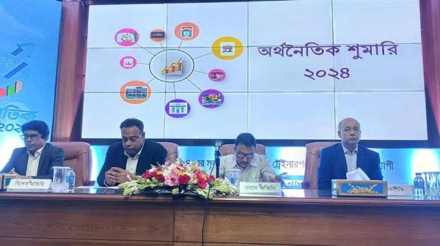 রাজধানীর আগারগাঁওয়ে বাংলাদেশ পরিসংখ্যান ব্যুরোর (বিবিএস) সম্মেলন কক্ষে সোমবার (৯ ডিসেম্বর) আয়োজিত এক প্রেস ব্রিফিংয়ে এ তথ্য জানানো হয়। অর্থনৈতিক শুমারি ২০২৪ প্রকল্পের ডেপুটি প্রকল্প পরিচালক মিজানুর রহমান শুমারির বিভিন্ন দিক তুলে ধরেন। অনুষ্ঠানে প্রধান অতিথি ছিলেন পরিসংখ্যান ও তথ্য ব্যবস্থাপনা বিভাগের সচিব মো. মাহবুব হোসেন।