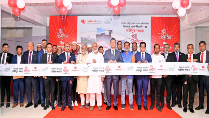 মিডল্যান্ড ব্যাংক পিএলসি গাজীপুরের জয়দেবপুর বাজারে তাদের নতুন শাখার উদ্বোধন করেছে। সম্প্রতি আয়োজিত উদ্বোধনী অনুষ্ঠানে প্রধান অতিথি হিসেবে উপস্থিত ছিলেন ব্যাংকের ব্যবস্থাপনা পরিচালক ও সিইও মোঃ আহসান-উজ জামান।
