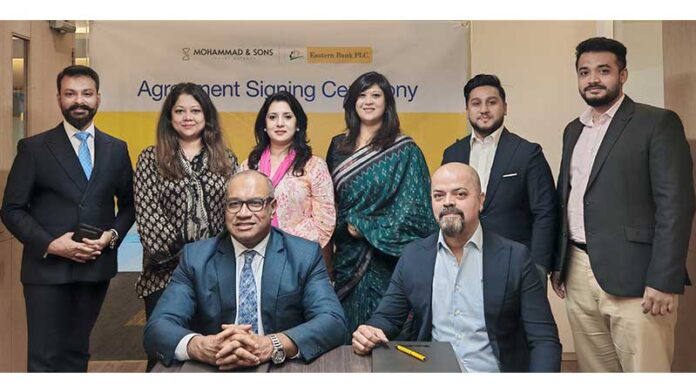 ইস্টার্ন ব্যাংক লিমিটেড (ইবিএল) এবং দেশের অন্যতম প্রিমিয়াম লাইফস্টাইল ব্র্যান্ড মোহাম্মদ অ্যান্ড সন্সের মধ্যে একটি সমঝোতা চুক্তি সই হয়েছে। এই চুক্তির মাধ্যমে ইবিএলের প্রায়োরিটি গ্রাহকরা মোহাম্মদ অ্যান্ড সন্স থেকে বিশেষ সুবিধা ও প্রিভিলেজ উপভোগ করতে পারবেন।