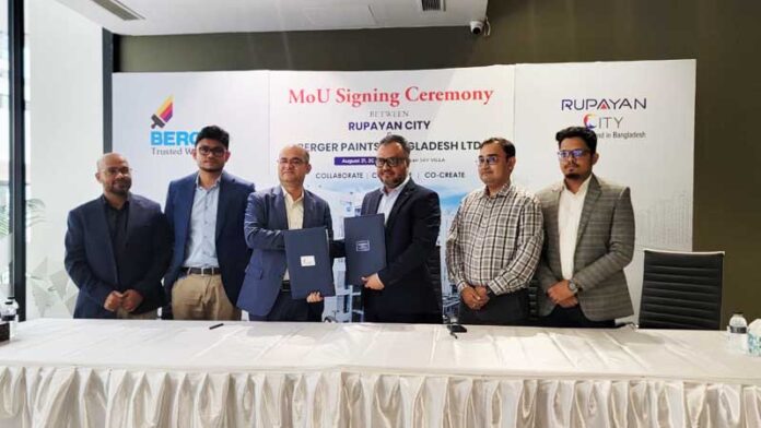 রূপায়ণ সিটির সিইও এম মাহবুবুর রহমান বলেন, “আমাদের লক্ষ্য হলো গ্রাহকদের জন্য মানসম্মত সেবা এবং সুবিধা বৃদ্ধি করা। বার্জার পেইন্টসের সঙ্গে এই অংশীদারিত্ব আমাদের প্রকল্পগুলোর মান ও গ্রহণযোগ্যতা আরও বাড়াবে। আমরা আশা করি, এটি উভয় পক্ষের জন্য দীর্ঘমেয়াদী সাফল্যের পথ সুগম করবে।”