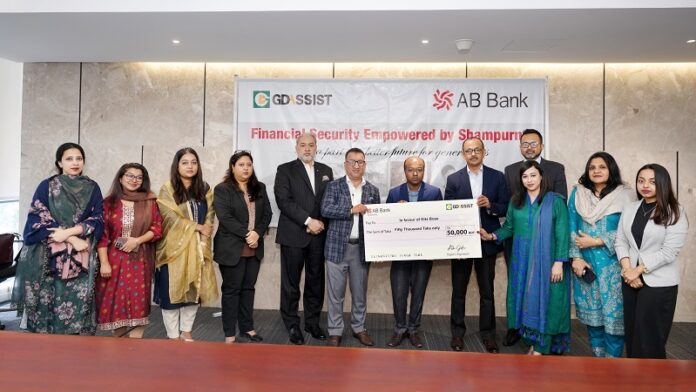 এবি ব্যাংক পিএলসি সম্প্রতি একজন “সম্পূর্ণা” গ্রাহকের পরিবারকে ৫০ হাজার টাকার চেক হস্তান্তর করেছে। গ্রীন ডেল্টা ইন্স্যুরেন্সের সাবসিডিয়ারি প্রতিষ্ঠান জিডি অ্যাসিস্ট লিমিটেডের মাধ্যমে এই বিমা সুবিধা প্রদান করা হয়।