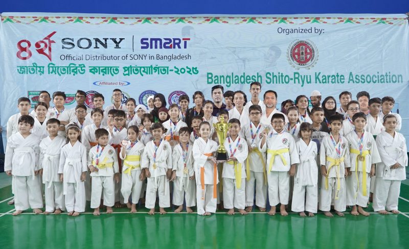 ৪র্থ সনি-স্মার্ট জাতীয় সিতোরিউ কারাতে প্রতিযোগিতা-২০২৫-এ অংশ নিয়ে ১৬টি স্বর্ণপদক, ১৮টি রৌপ্যপদক এবং ৩৪টি তাম্রপদক পেয়ে রানার আপ হওয়ার গৌরব অর্জন করেছেন ঢাকা উত্তর সিটি কর্পোরেশন এলাকাধীন দল রাজধানীর আগারগাঁওয়ের স্মার্ট স্পোর্টস একাডেমির প্রতিযোগিরা।