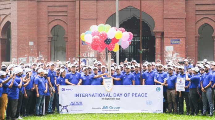 রাজধানীতে বর্ণাঢ্য আয়োজনের মধ্য দিয়ে জাতিসংঘ ঘোষিত বিশ্ব শান্তি দিবস উদযাপন করেছে দেশের শীর্ষ ওষুধ ও চিকিৎসা সরঞ্জাম প্রস্তুতকারক প্রতিষ্ঠান জেএমআই গ্রুপ। রোববার সকালে ঢাকা বিশ্ববিদ্যালয়ের কার্জন হলে স্থাপিত শান্তি স্তম্ভের সামনে থেকে বেলুন ও সাদা পায়রা উড়িয়ে শোভাযাত্রার উদ্বোধন করেন প্রতিষ্ঠানটির প্রতিষ্ঠাতা ও ব্যবস্থাপনা পরিচালক মো. আবদুর রাজ্জাক। শোভাযাত্রা দোয়েল চত্বর প্রদক্ষিণ করে রাজু ভাস্কর্যে এসে শেষ হয়।