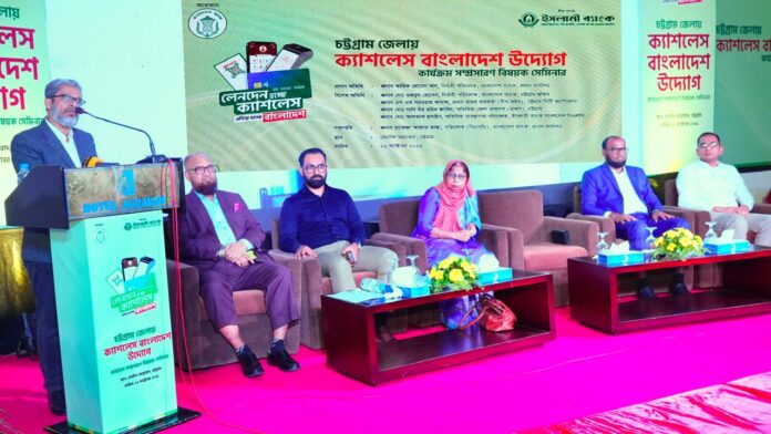 চট্টগ্রামে বাংলাদেশ ব্যাংকের উদ্যোগে এবং ইসলামী ব্যাংক বাংলাদেশ পিএলসি-এর ব্যবস্থাপনায় “ক্যাশলেস বাংলাদেশ উদ্যোগ কার্যক্রম সম্প্রসারণ ক্যাম্পেইন” উপলক্ষে ২২ অক্টোবর, ২০২৫ বুধবার এক দিনব্যাপী বর্ণাঢ্য রোডশো, সেমিনার ও স্টল প্রদর্শনী অনুষ্ঠিত হয়েছে। দেশের বিভিন্ন অঞ্চলে ক্যাশলেস লেনদেন প্রসারের লক্ষ্যে এবং গ্রাহক সচেতনতা বৃদ্ধির উদ্দেশ্যে এই কর্মসূচি আয়োজন করা হয়।